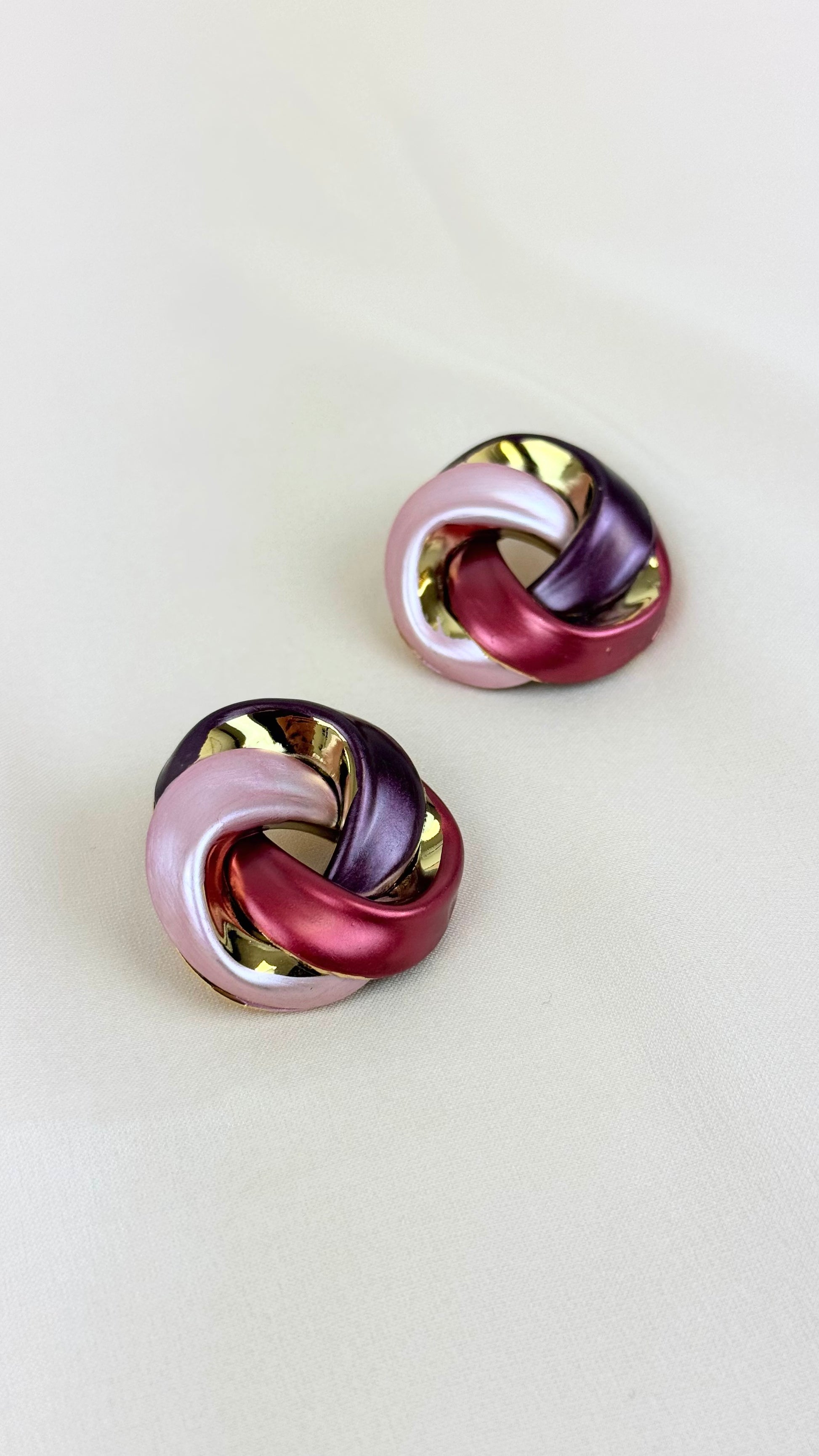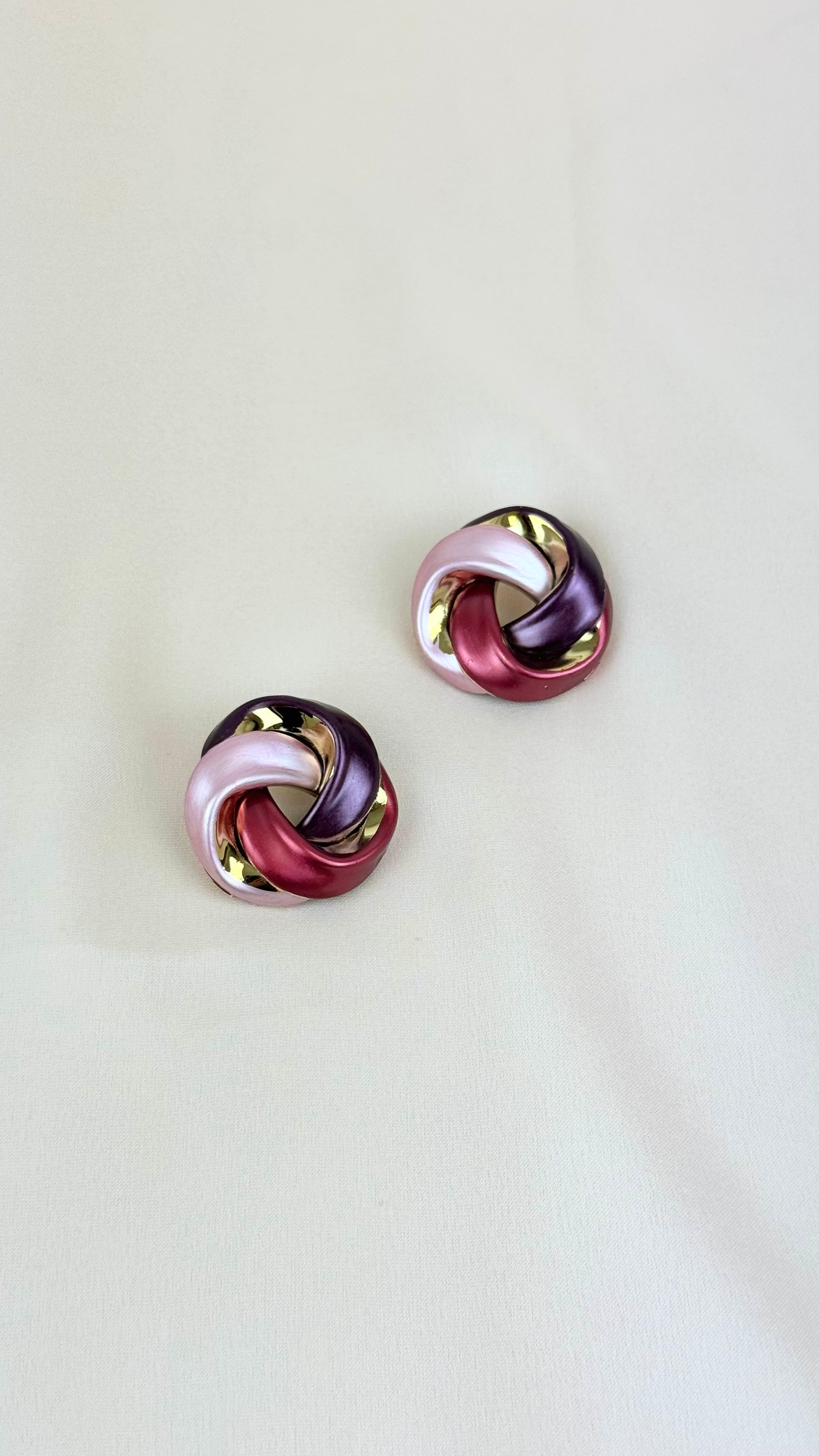 Brincos entrelaçados tons bordeaux e dourado