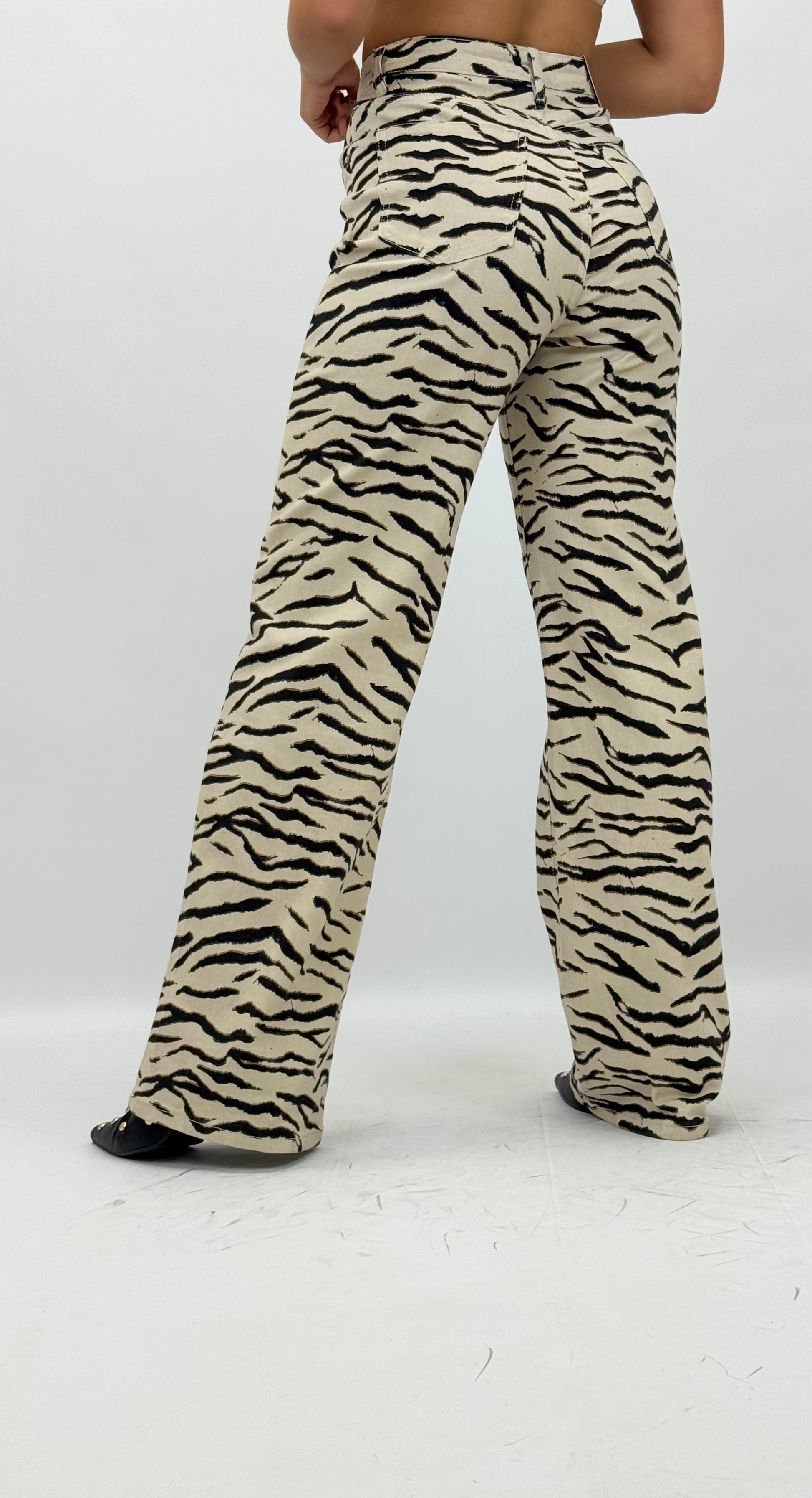 Calça sarja wide-leg padrão zebra