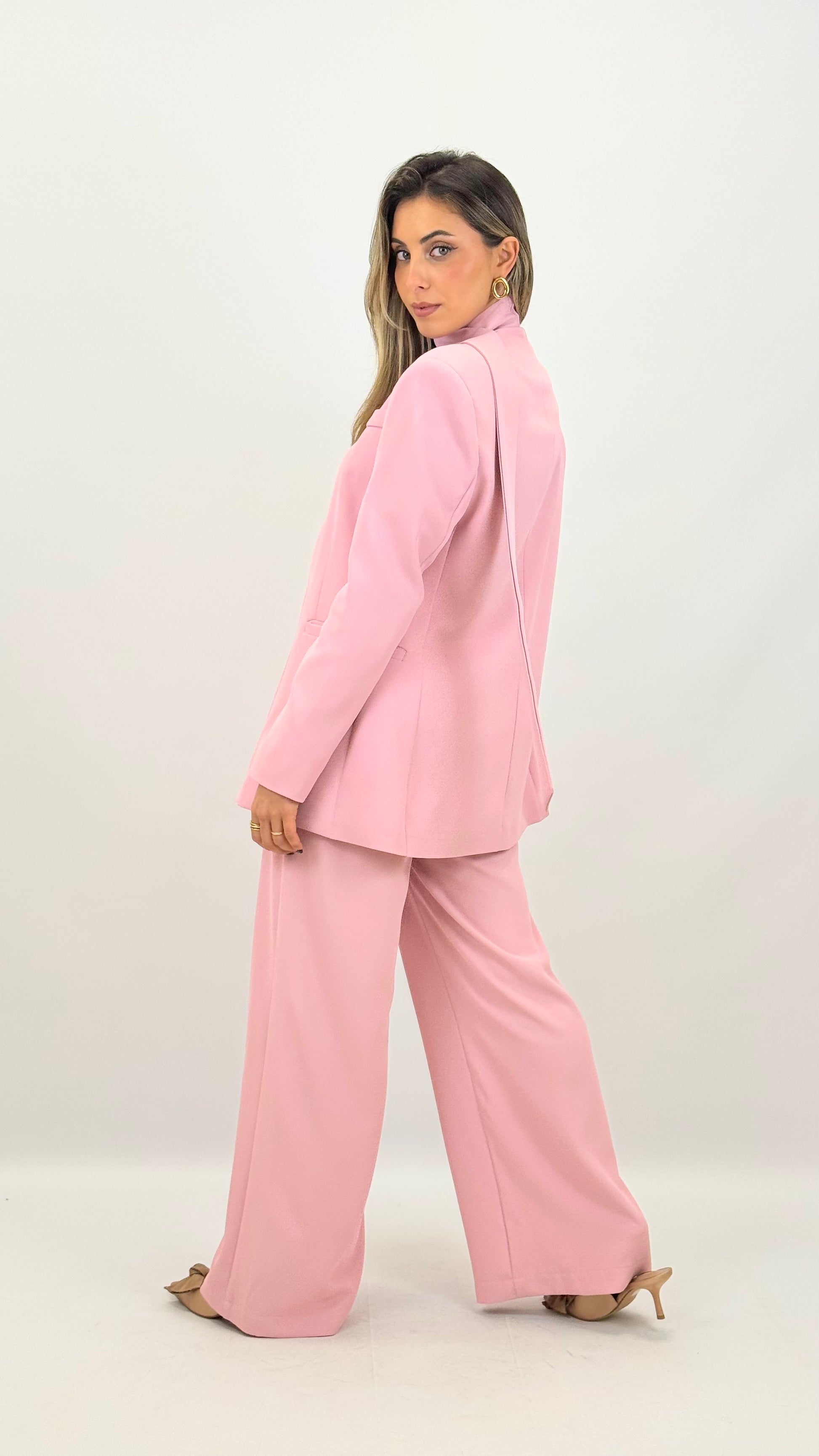 Calça tecido fluído, aperta com botão e fecho de correr na parte da frente. Bolsos nas laterais.