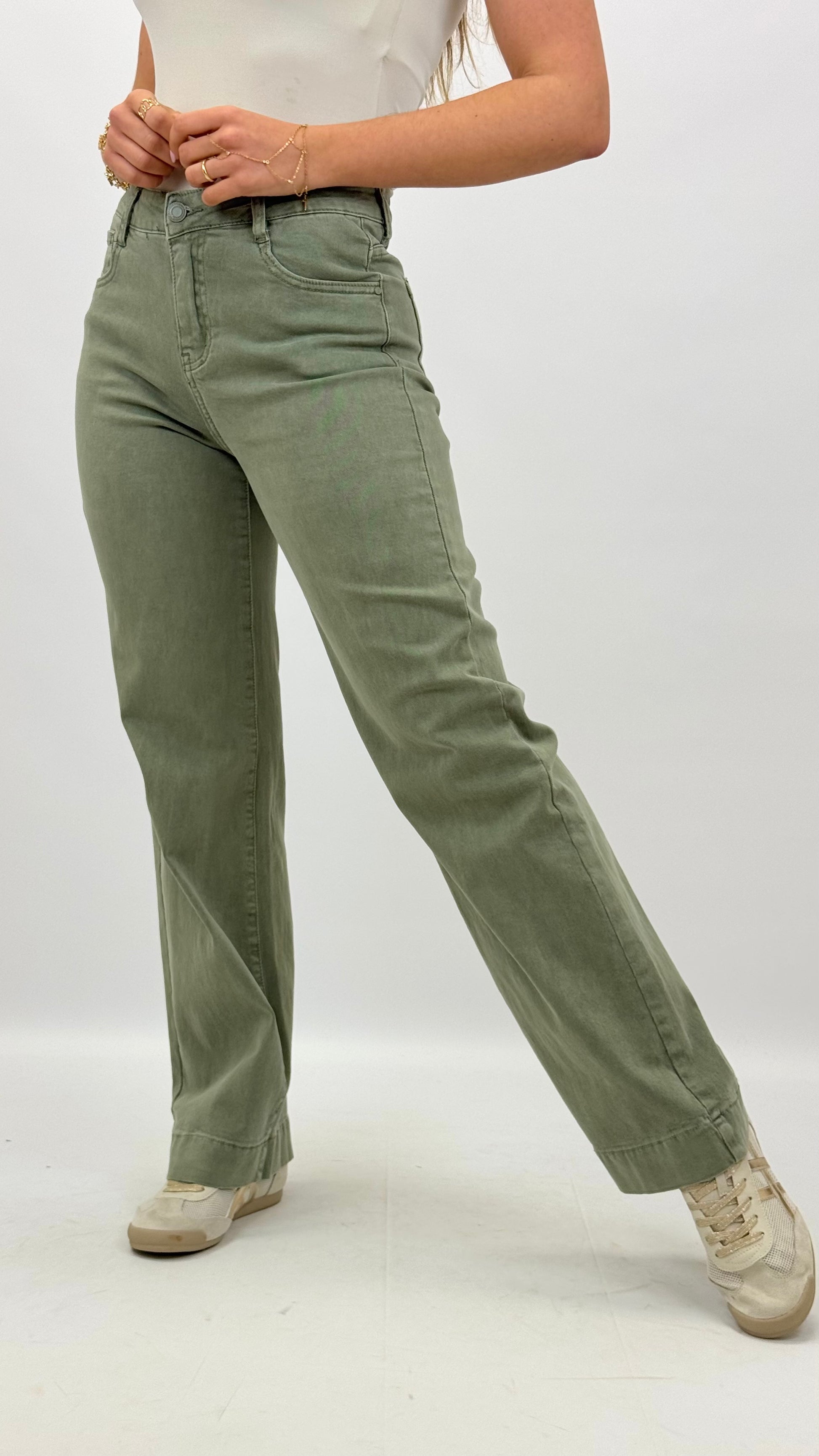 Calça wide-leg sarja verde