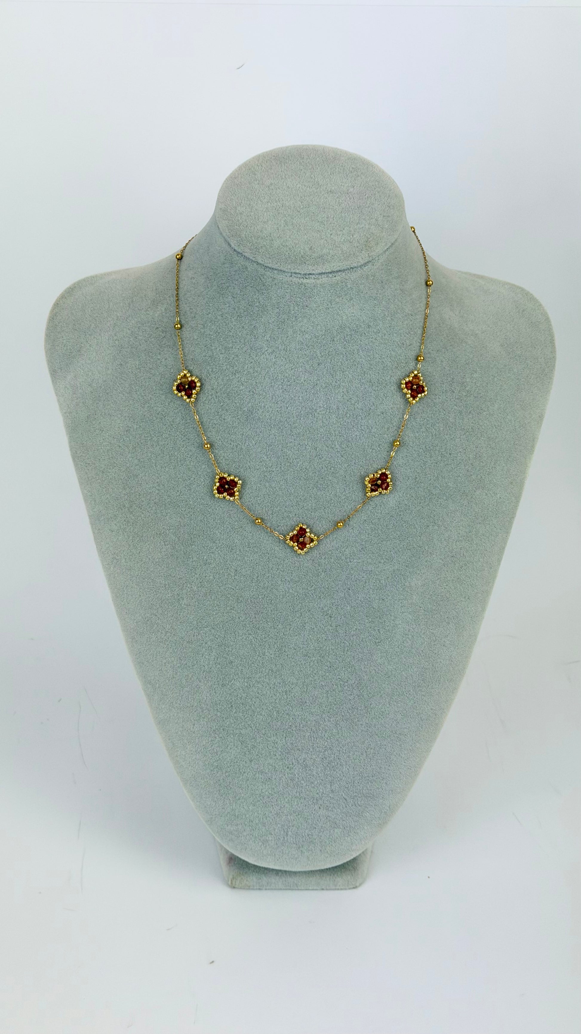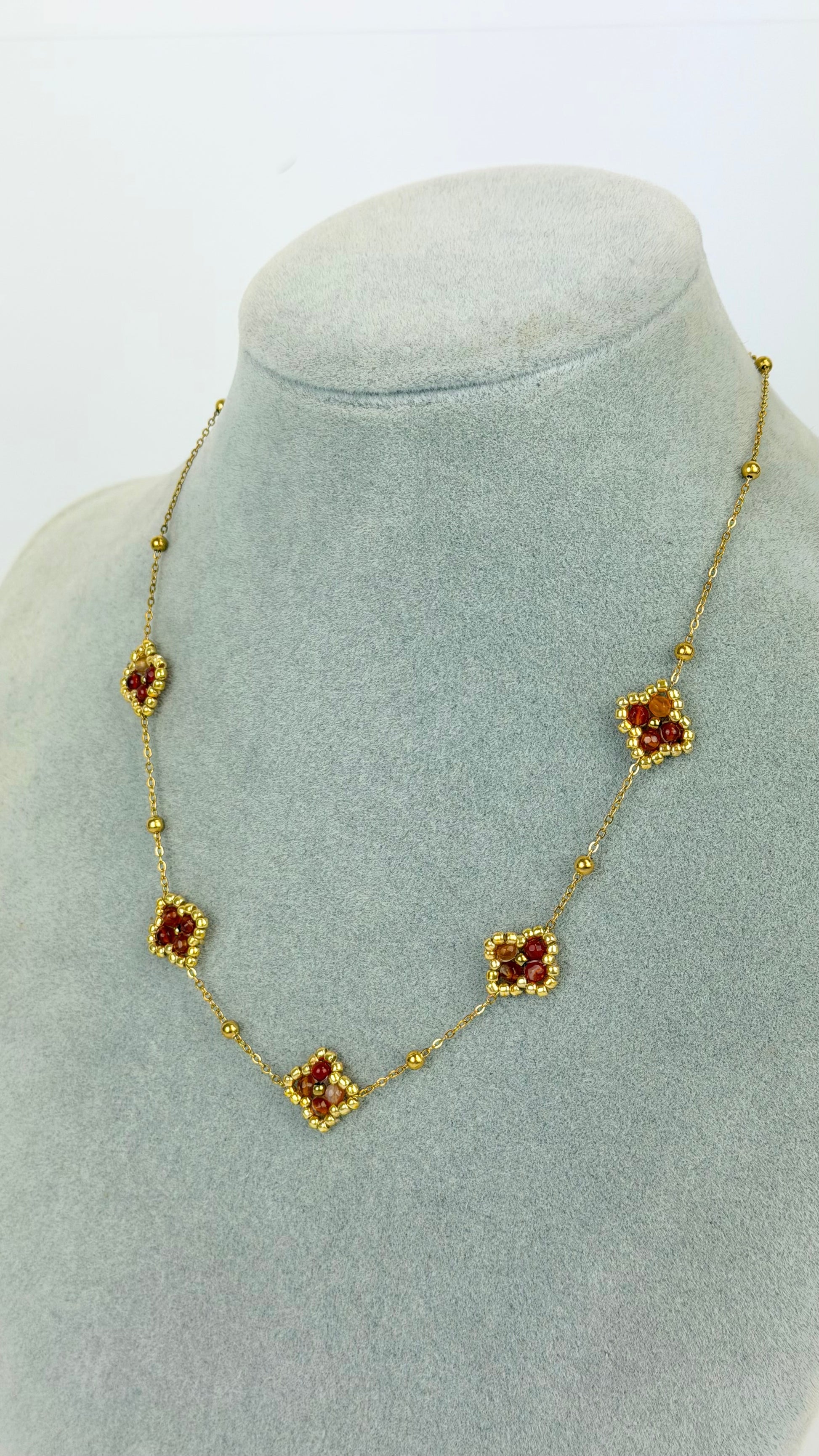 Colar fio aço florzinhas missangas telha