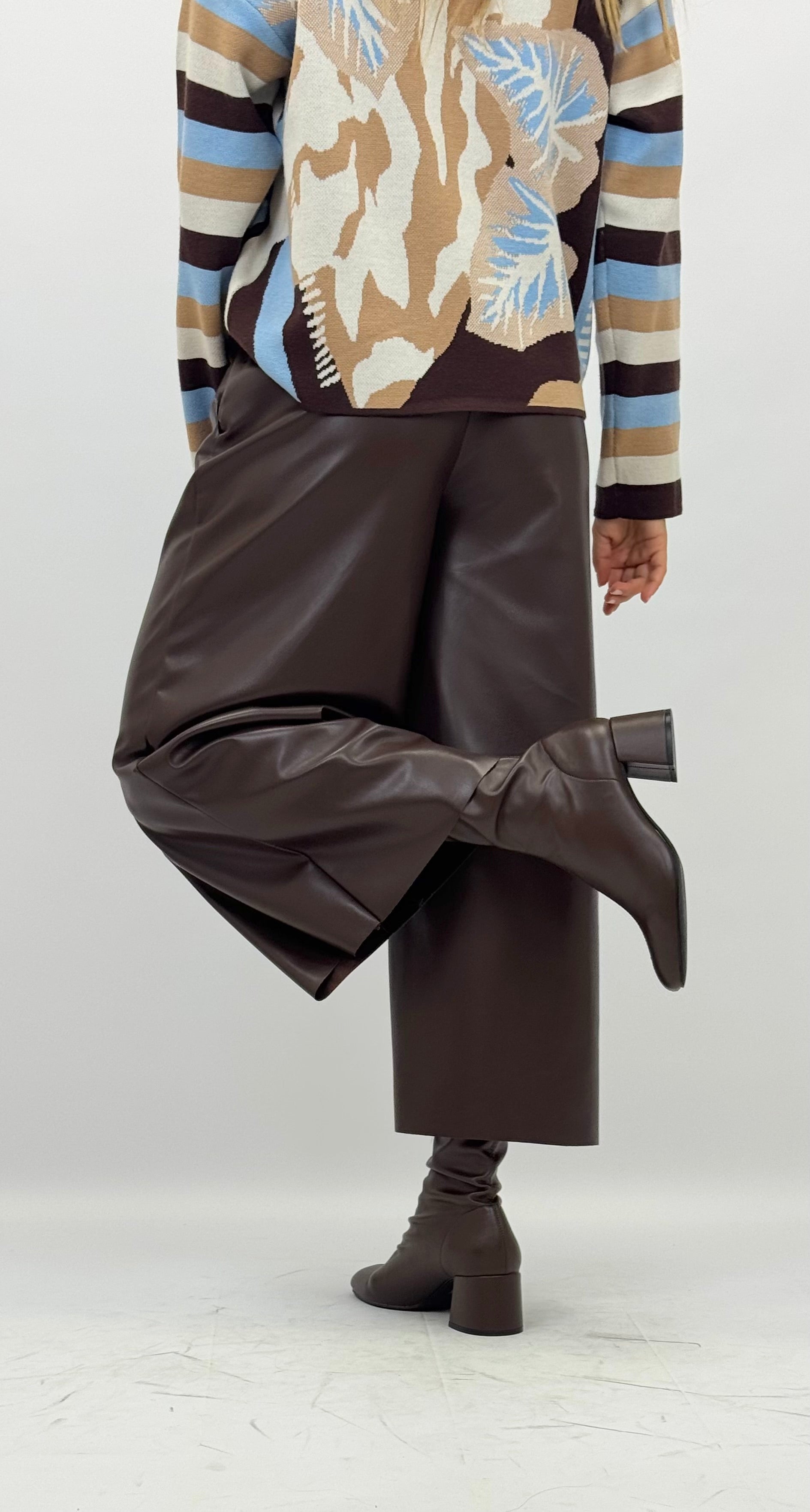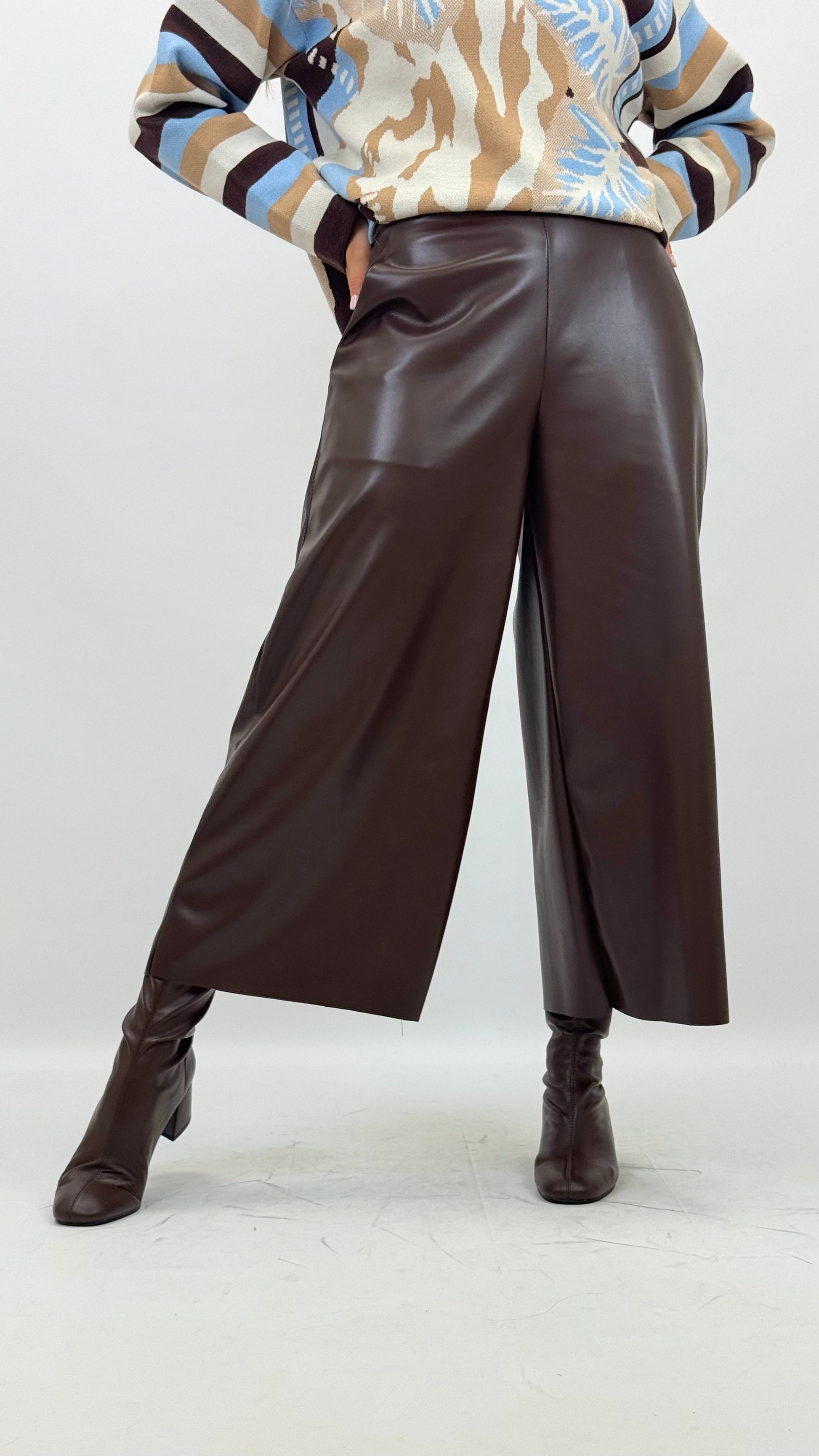 Cullotes em eco-pele, estilo napa elástico confortável. Aperta com fecho invisível na lateral. Ligeiramente cardada no interior.