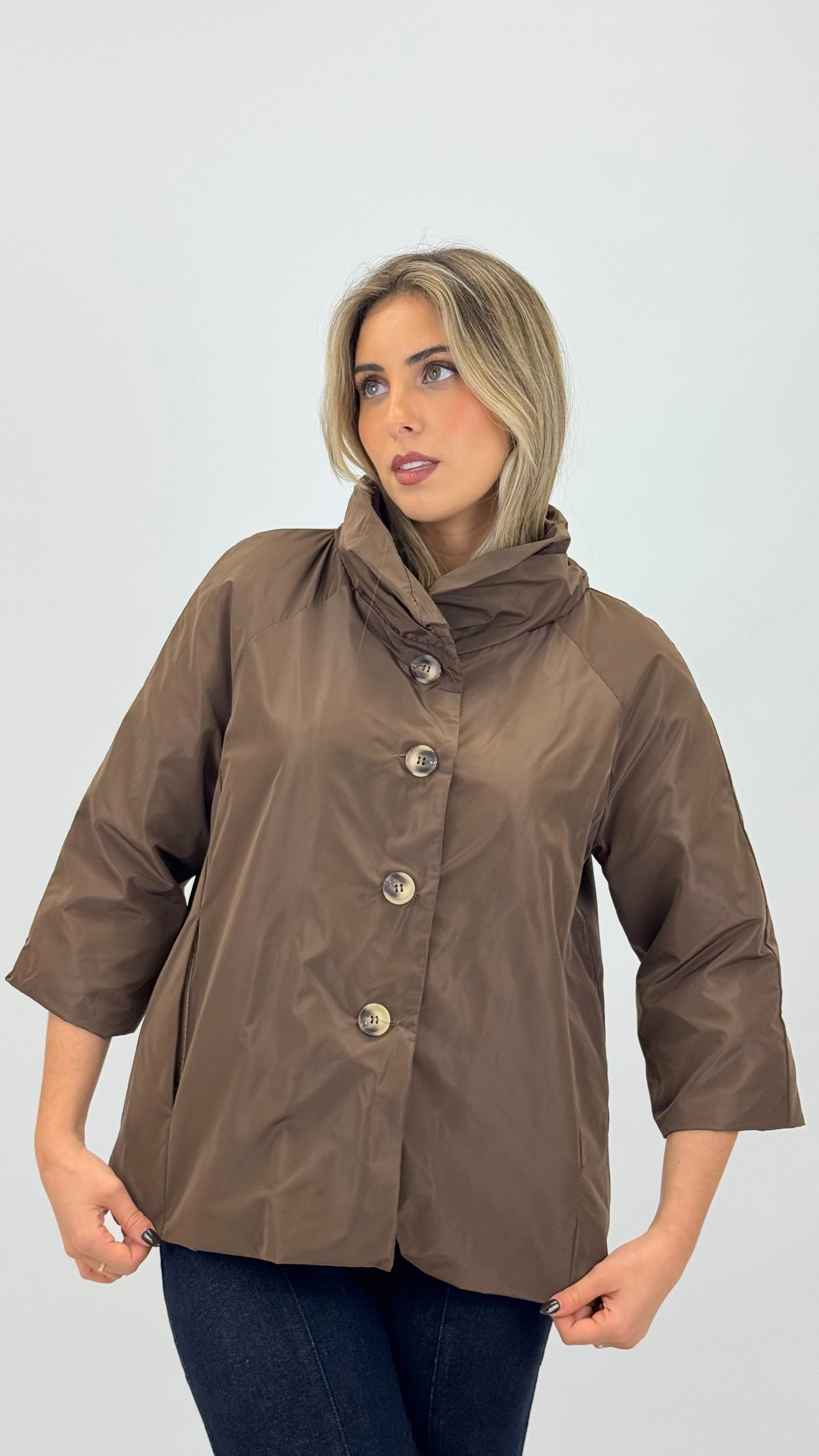 Parka manga 3/4 com botões castanho