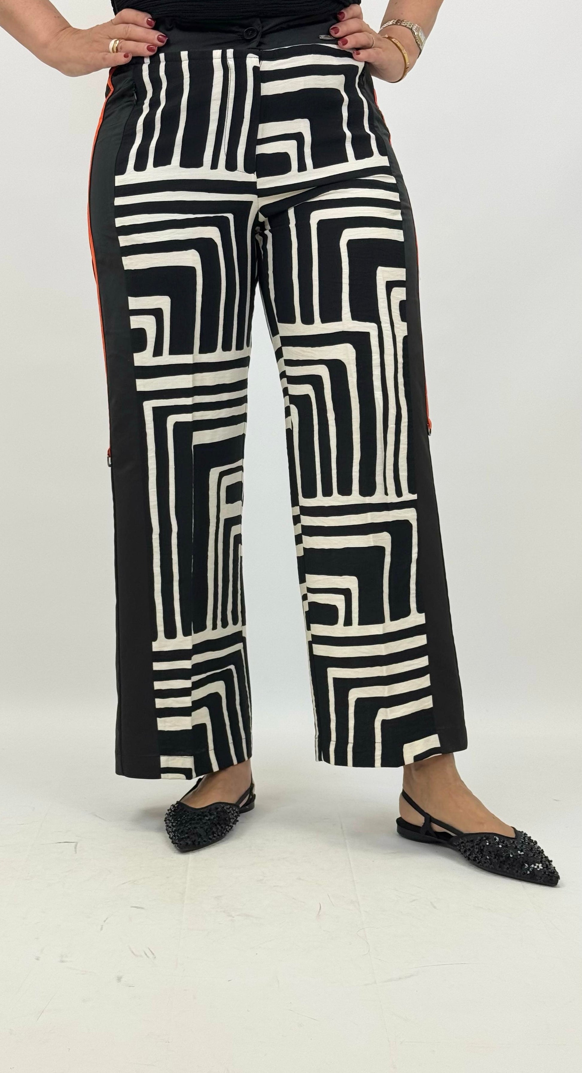 Calça em tecido padrão geométrico da prestigiada marca espanhola Mercedes de Miguel.