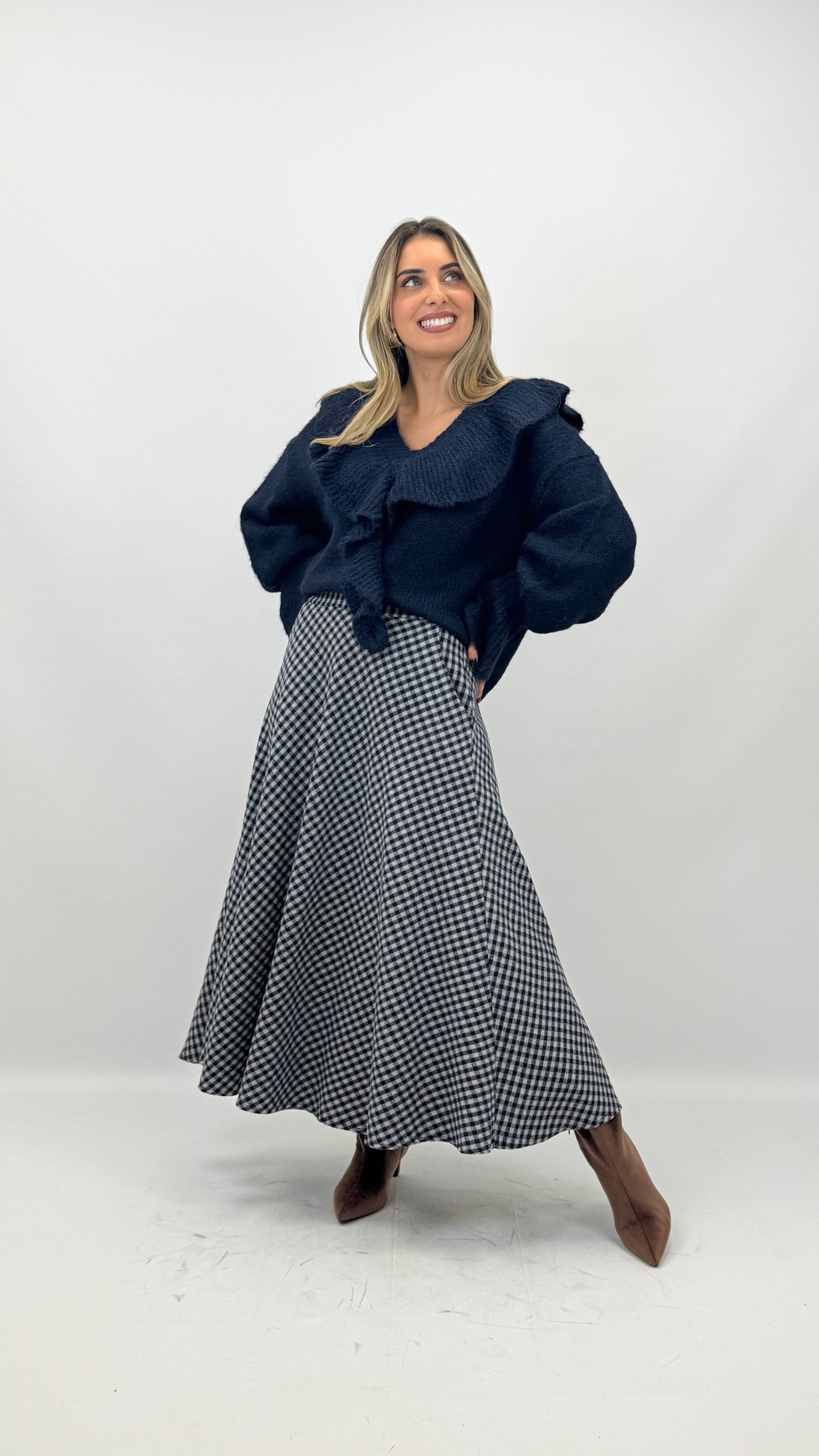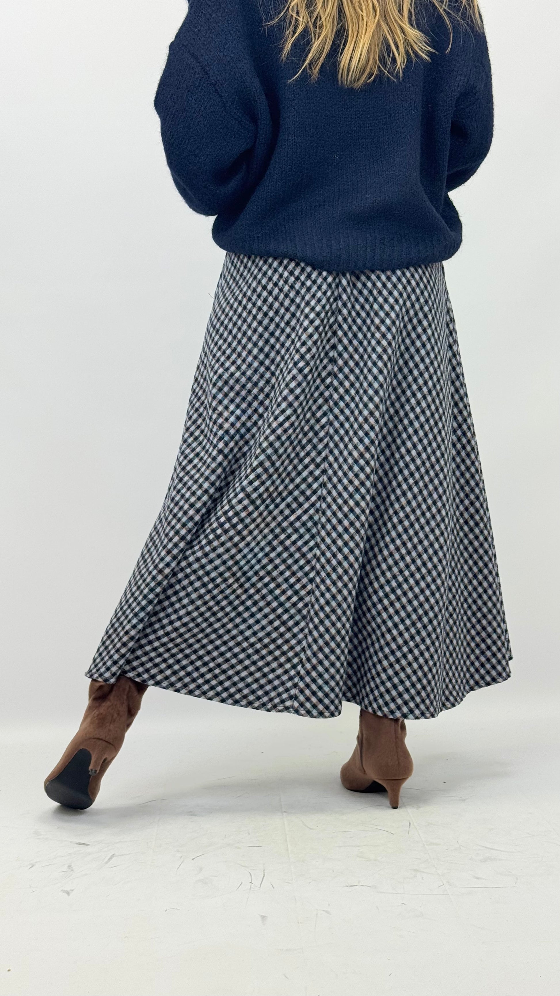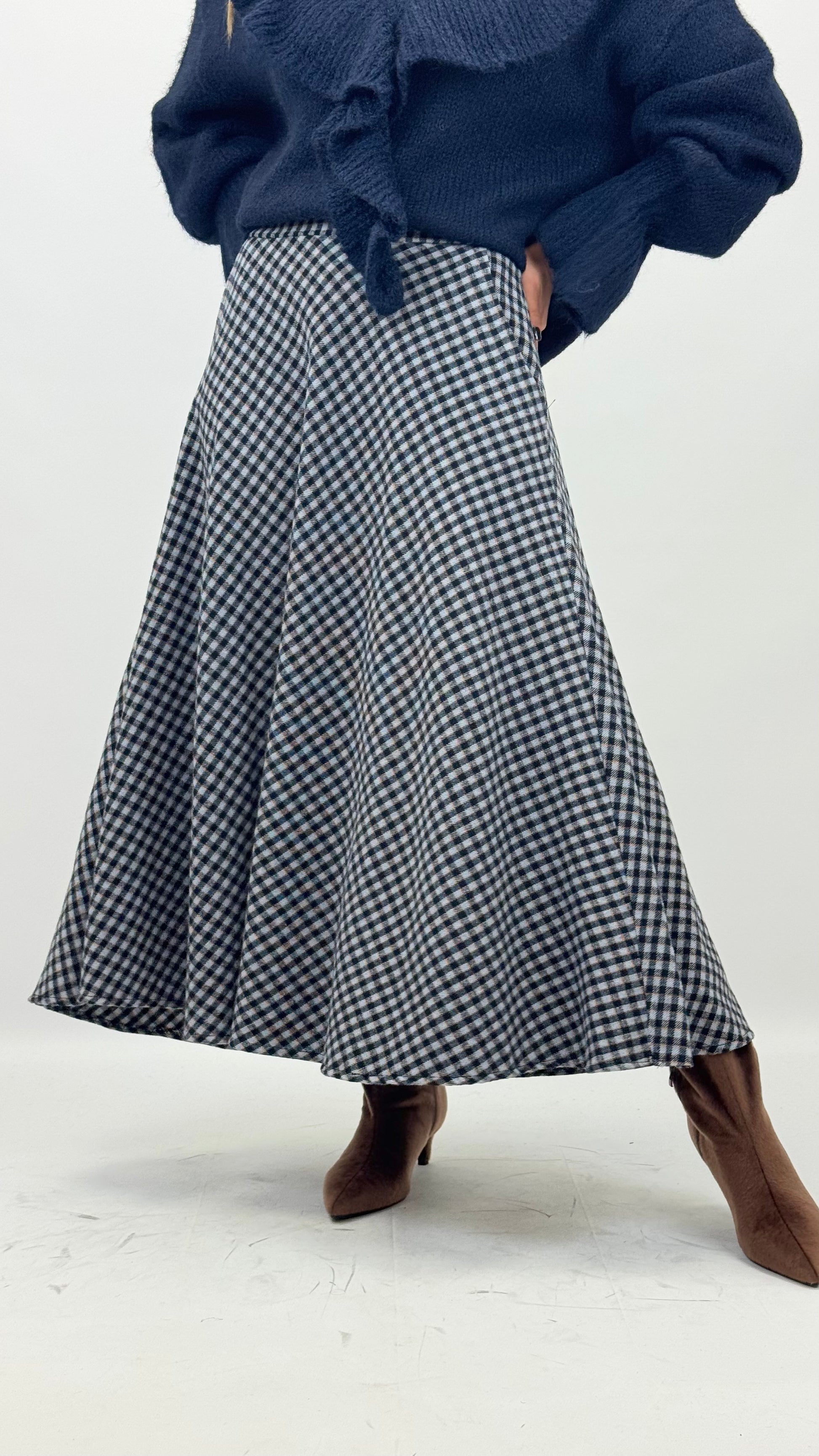 Saia midi em evasé, tecido macio, quente e confortável estilo fazenda/flanela.