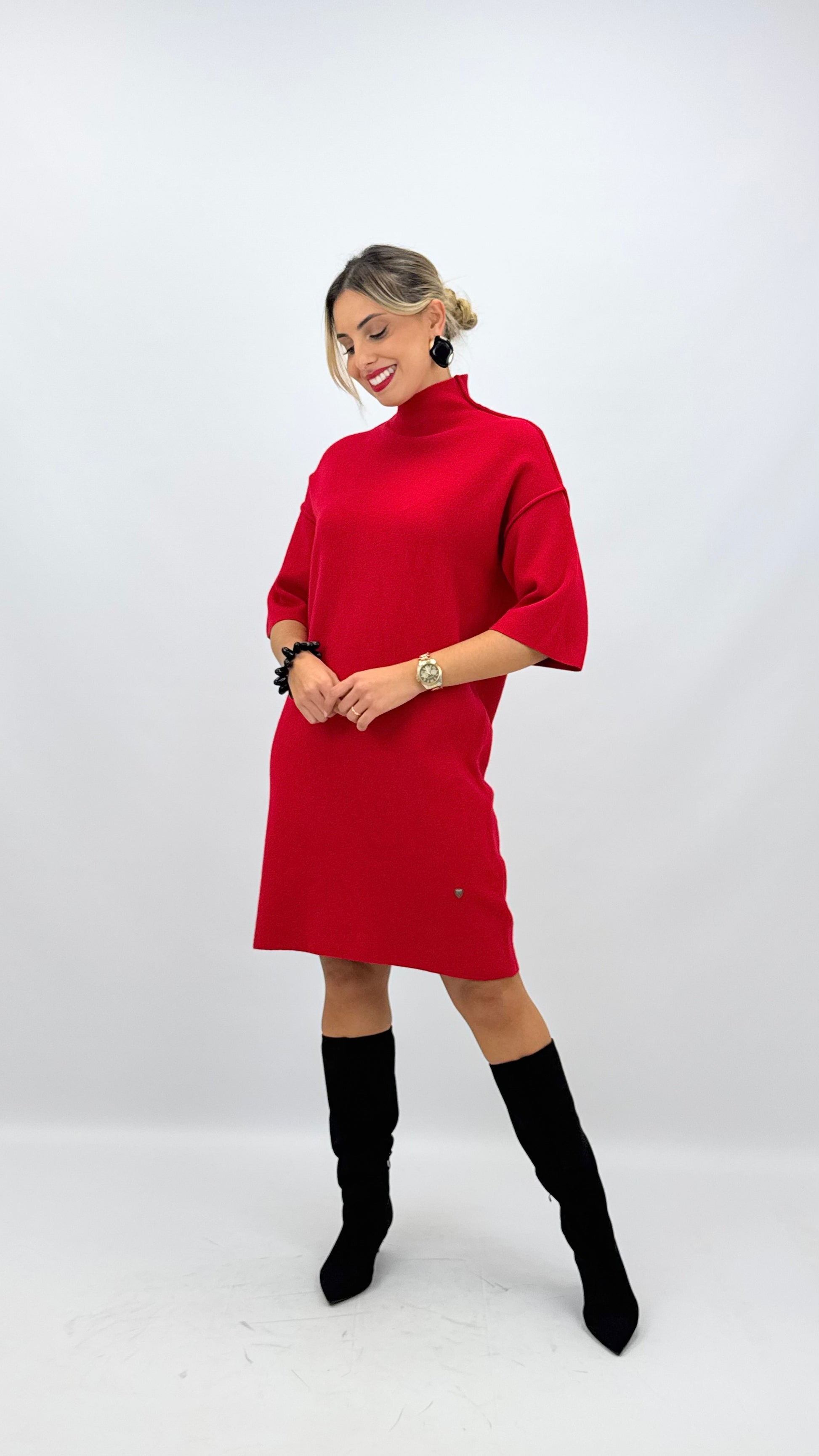 Vestido curto em malha macia e compacta com meia-gola e manga a 3/4.